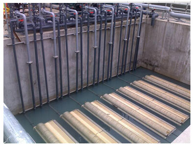 ?。?)調節(jié)池出水用提升泵提升到缺氧池,同時經過曝氣硝化過的污水回流進行反硝化脫氮。出水進入接觸氧化池,通過曝氣進行好氧生化處理同時進行硝化反應。
